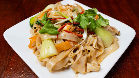 perfectly stir-fried noodles in a Vietnamese savoury sauce topped with mixed vegetables